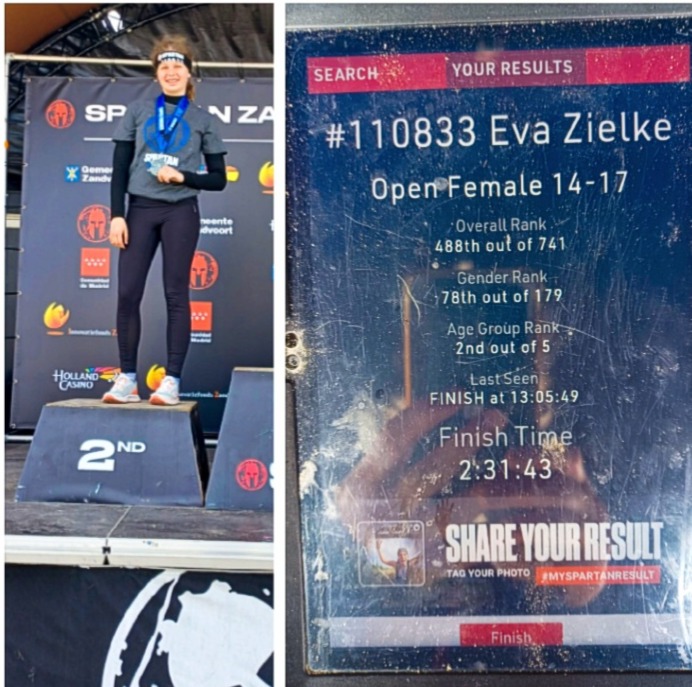 Die jungen Athleten mussten an insgesamt acht Stationen ihre Fähigkeiten unter Beweis stellen: 600 Meter SkiErg, Schlittenschieben (70 Kilo), Schlittenziehen (50 Kilo), 40 Meter Burpee-Broad-Jumps, 500 Meter Rudern, 100 Meter Farmer-Carry mit zwei Mal Zwölf-Kilo-Kettlebells, Lunges mit 7,5-Kilo-Sandsack, 50 Wall-Balls mit einem Drei-Kilo-Ball. Zwischen den Stationen mussten die Teilnehmer jeweils 300 Meter laufen. Eva nahm die Herausforderung ernst und hatte sich für den Wettkampf gründlich vorbereitet. Außerdem brachte sie bereits Wettkampferfahrungen aus Jahren davor mit – unter anderem im Extremhindernislauf Spartan Race in Zandvoort und in Palma de Mallorca, bei Schwimmchallenges und auf der Zehn-Kilometer-Strecke beim Teekottenlauf.