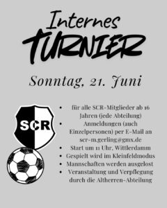 Beim internen Fußballturnier kicken SCR-Mitglieder aus allen Abteilungen in bunt gemischten Mannschaften am Sonntag, 21. Juni, auf dem Sportplatz Wittlerdamm – aus Spaß an der